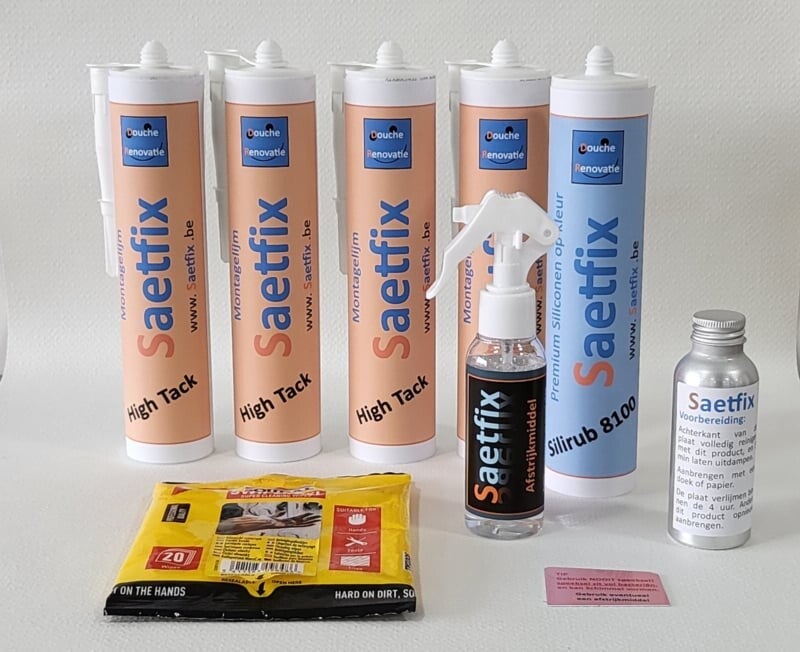 Met deze montage set ben je zeker dat je het juiste materiaal in huis hebt om de Saetfix panelen te verlijmen en af te werken. Dat is vooruitzien en een goed begin is het halve werk ;-)