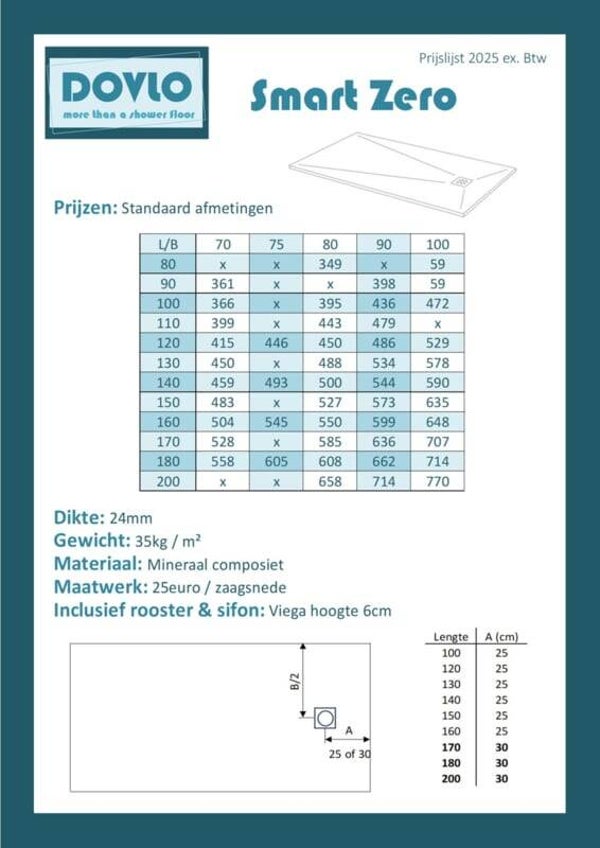 - Inclusief Viega Sifon met haarzeef (dikte 6cm) (aansluiting op afvoer met schroef dichting 40mm)