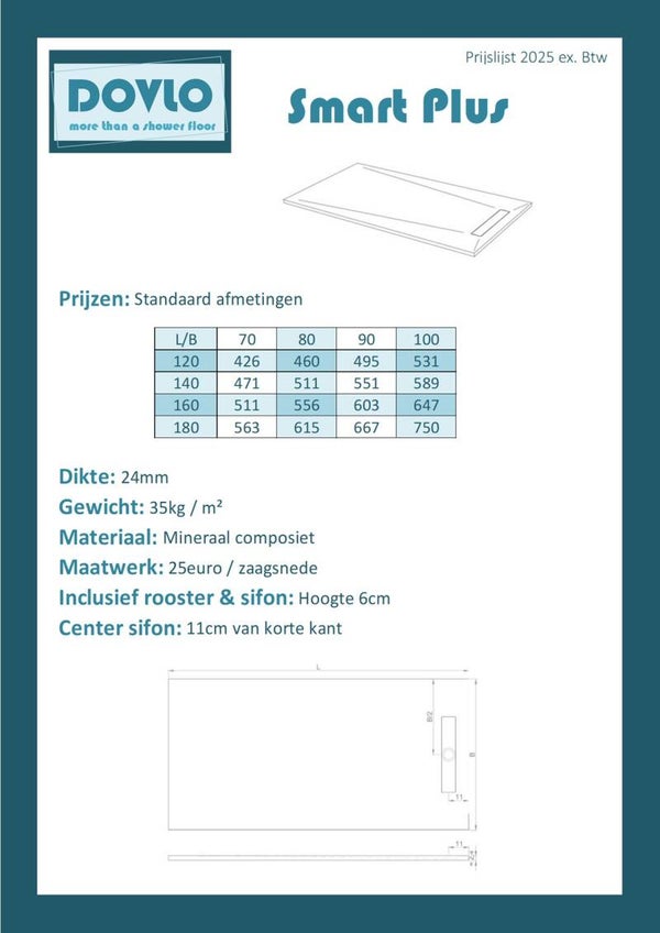Dovlo Smart Plus Breedte 80 / 90 / 100cm x Lengte