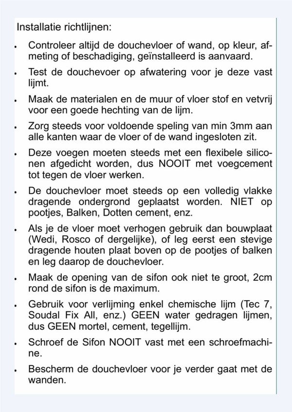 - Inclusief Viega Sifon met haarzeef (dikte 6cm) (aansluiting op afvoer met schroef dichting 40mm)
